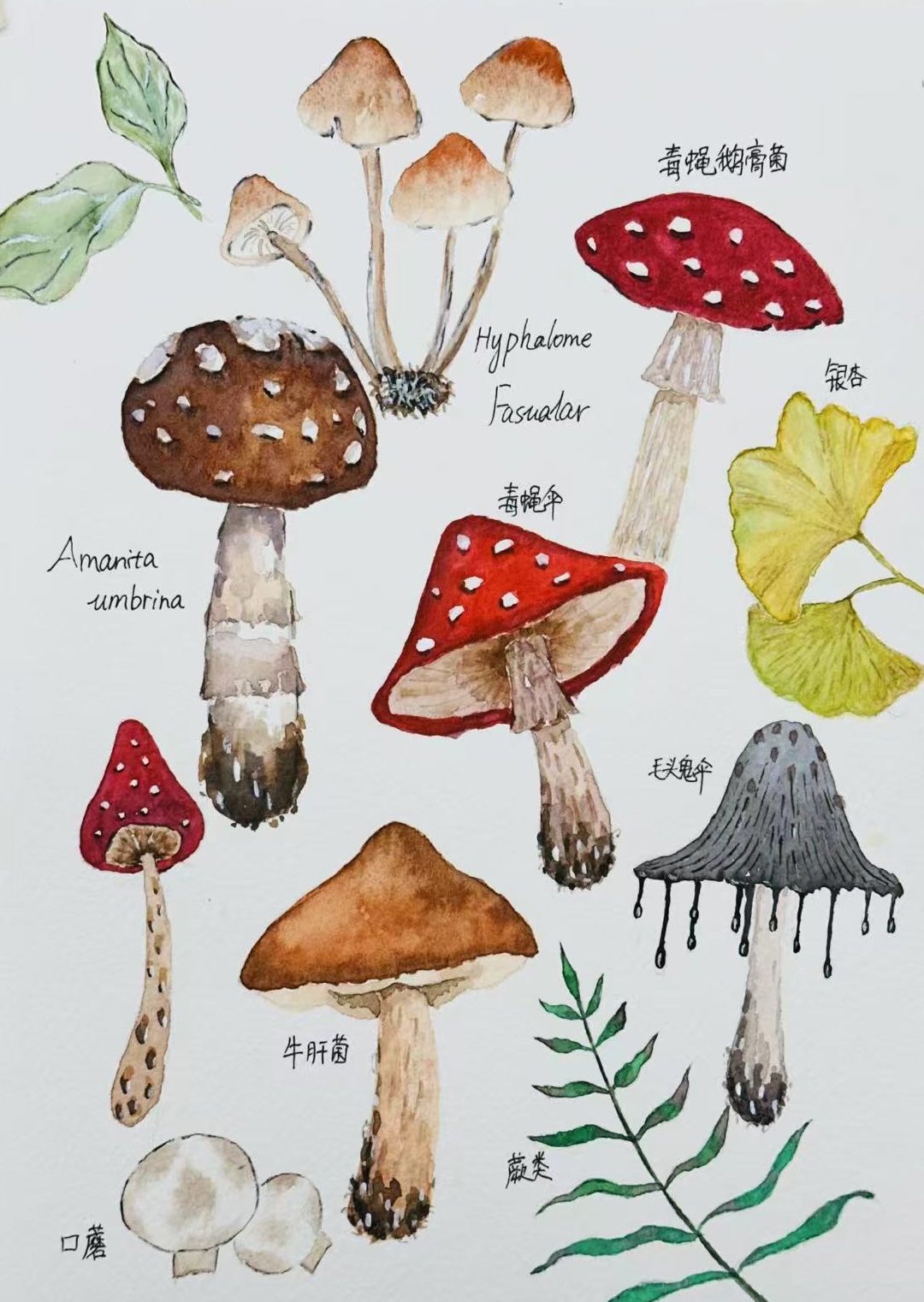 美丽的(毒)蘑菇。(图片为作者的水彩画习作)